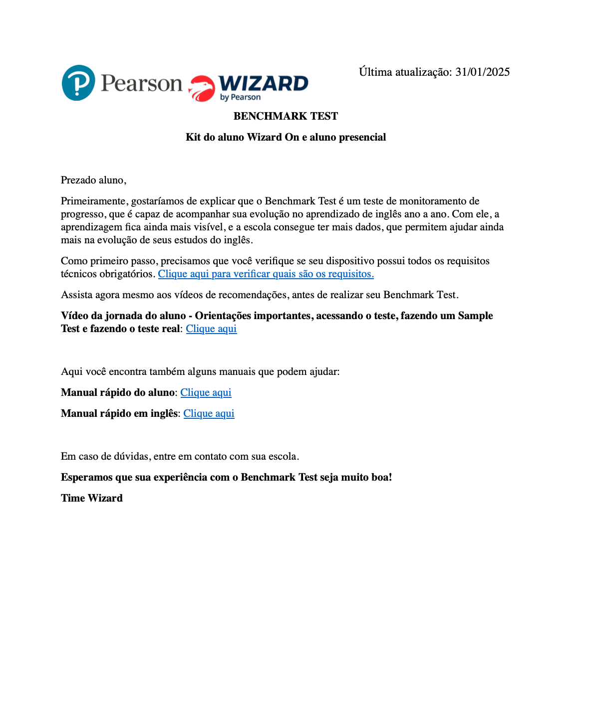 Observação importante: o teste de nível, o teste de referência, o teste de prontidão e o certificado de inglês Pearson só podem ser realizados em computadores.